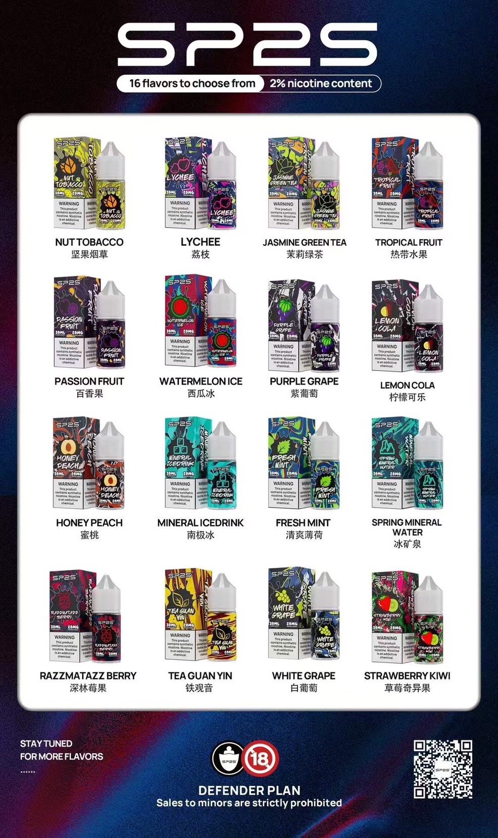 - 多口味選擇: SP2 註入式煙油多種口味選擇,滿足不同喜好。